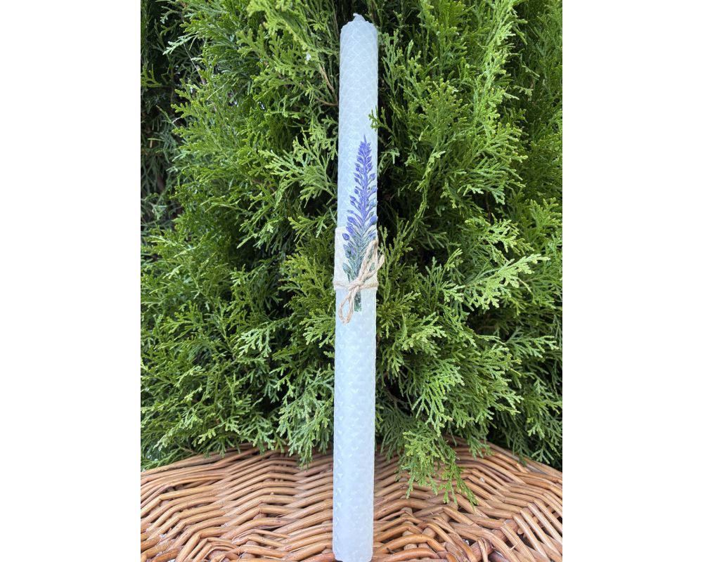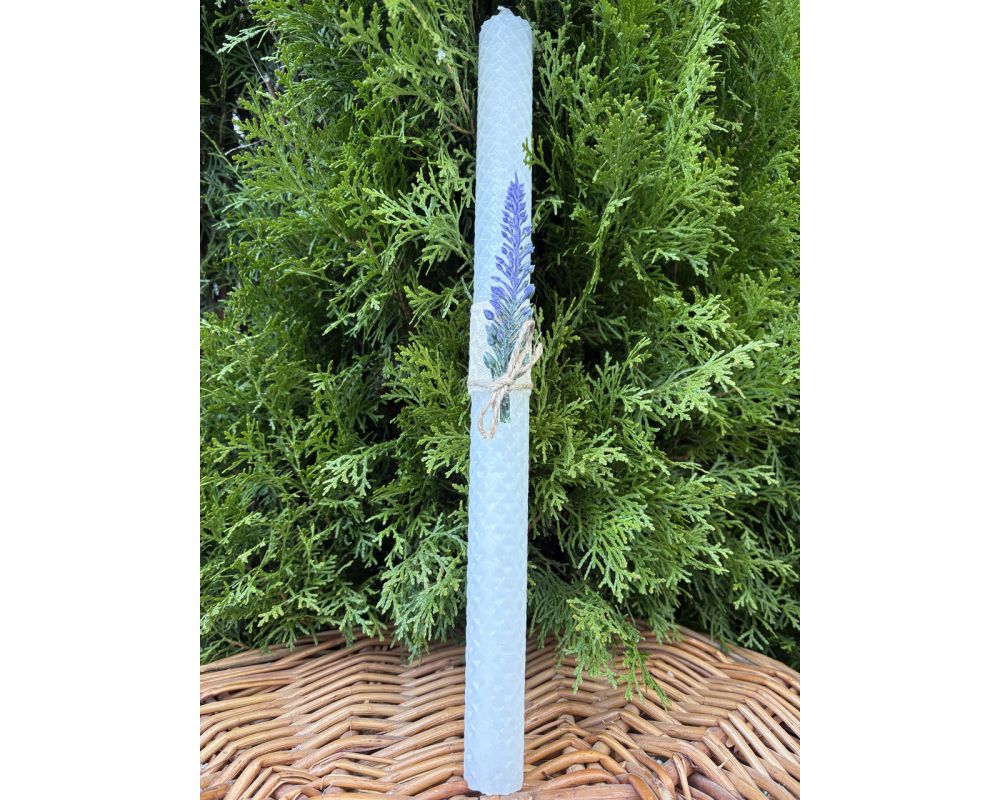 Декоративна довга свічка з лавандою, святкова свічка для вінчання, хрещення, Великодня та урочистих подій 34 см