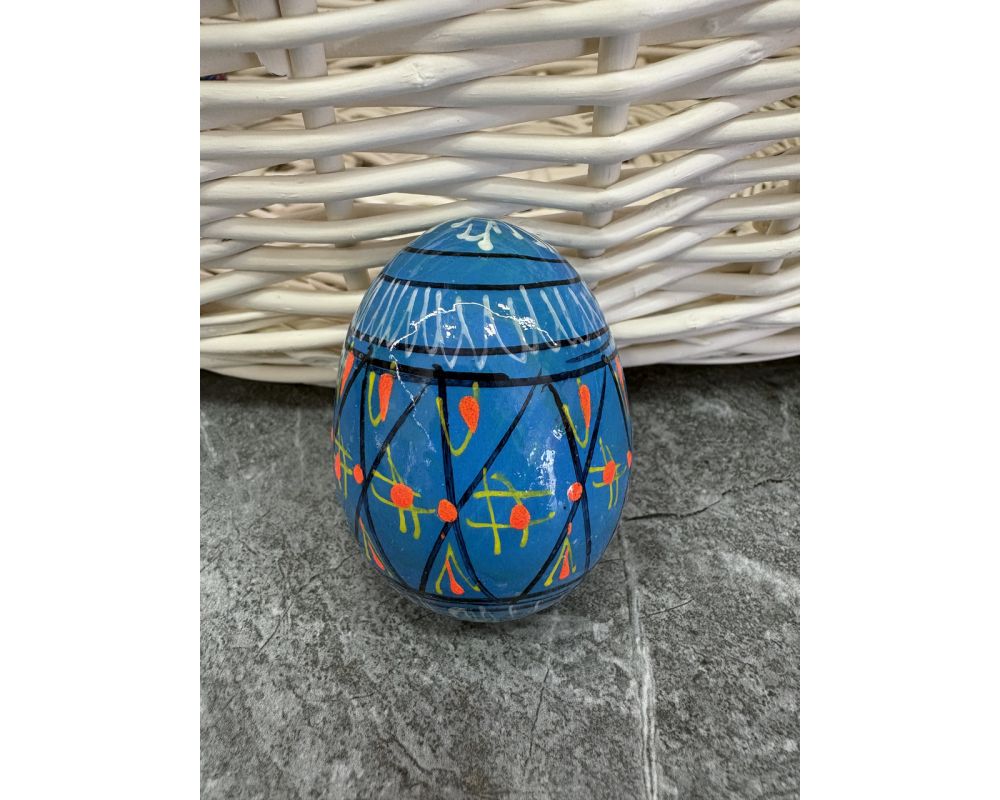 Яйце дерев'яне ПИСАНКА ручний розпис, яйця на Великдень прикраса в кошик, писанка деревʼяна блакитний колір