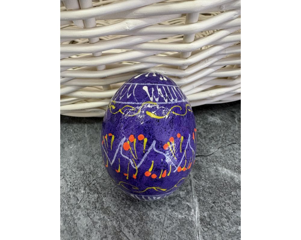 Яйце дерев'яне ПИСАНКА ручний розпис, яйця на Великдень прикраса в кошик, писанка деревʼяна фіолетовий колір