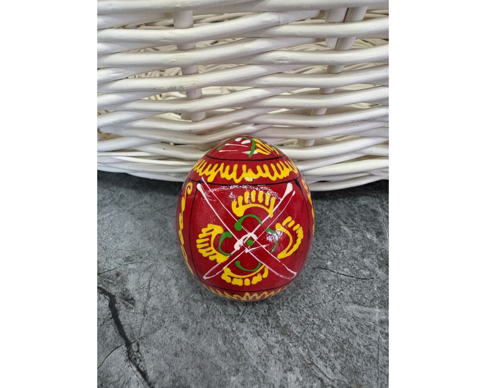 Яйце дерев'яне ПИСАНКА ручний розпис, яйця на Великдень прикраса в кошик, писанка деревʼяна червоний колір