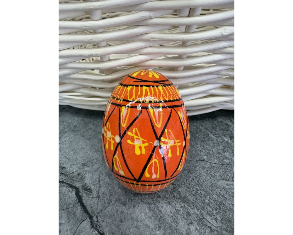 Яйце дерев'яне ПИСАНКА ручний розпис, яйця на Великдень прикраса в кошик, писанка деревʼяна кораловий колір