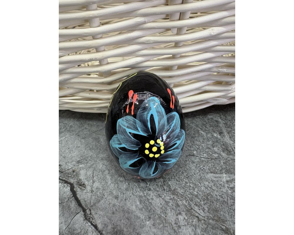 Яйце дерев'яне ПИСАНКА ручний розпис, яйця на Великдень прикраса в кошик, писанка деревʼяна блакитна квітка