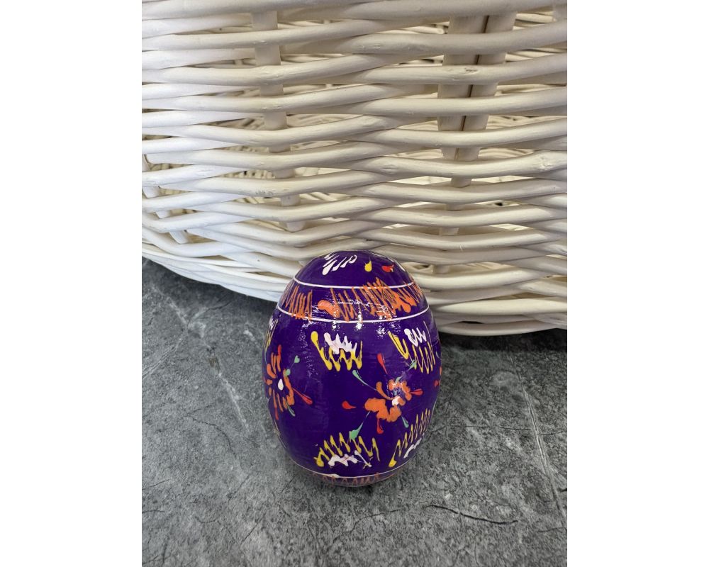 Яйце дерев'яне ПИСАНКА ручний розпис, яйця на Великдень прикраса в кошик, писанка деревʼяна фіолетовий колір