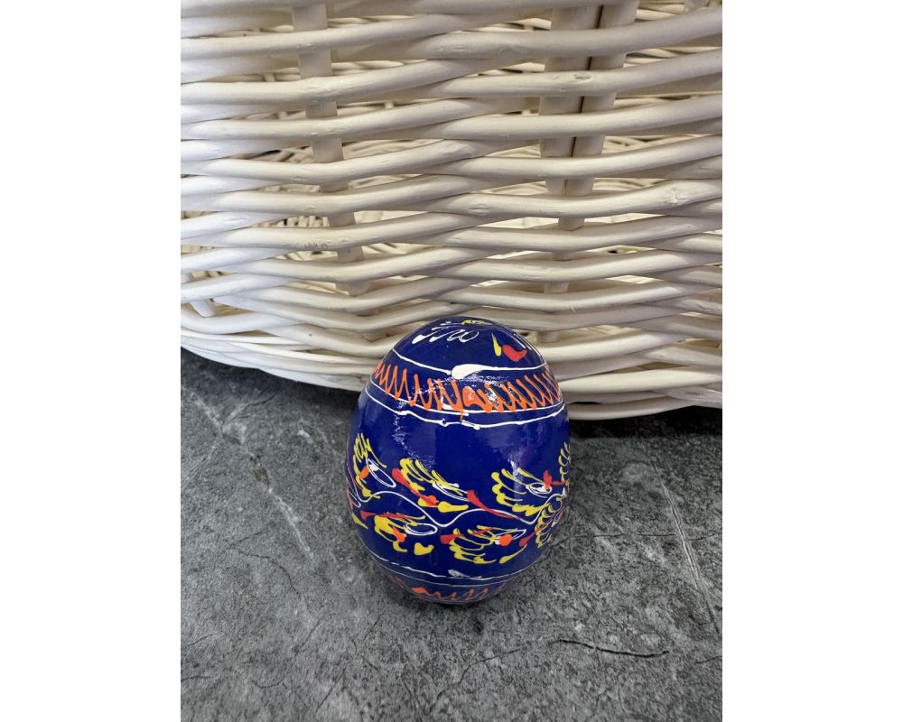 Яйце дерев'яне ПИСАНКА ручний розпис, яйця на Великдень прикраса в кошик, писанка деревʼяна синій колір