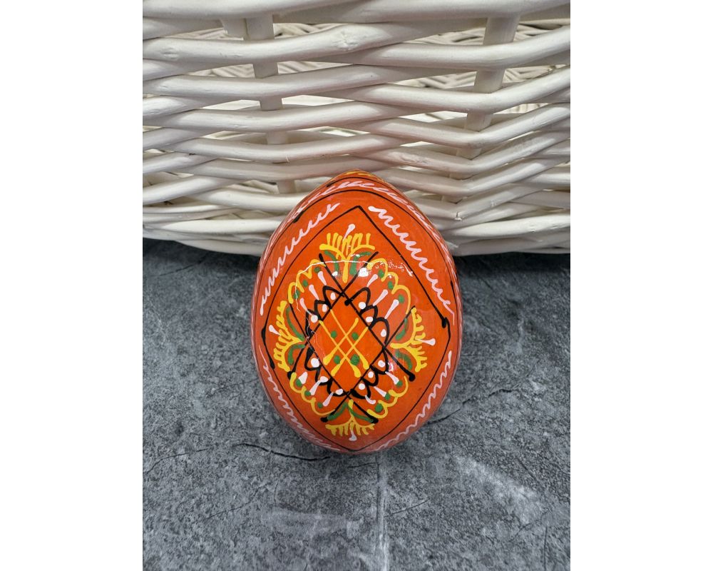Яйце дерев'яне ПИСАНКА ручний розпис, яйця на Великдень прикраса в кошик, писанка деревʼяна жовтогарячий колір