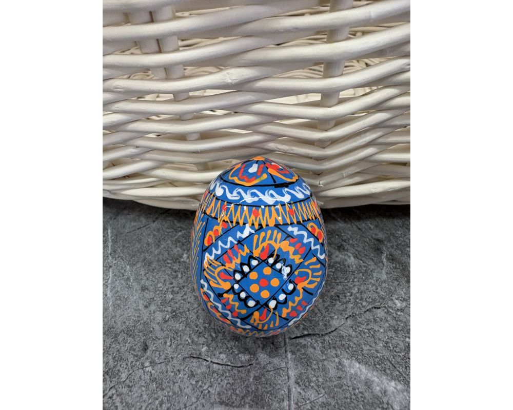 Яйце дерев'яне ПИСАНКА ручний розпис, яйця на Великдень прикраса в кошик, писанка деревʼяна блакитний колір
