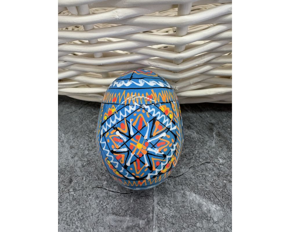 Яйце дерев'яне ПИСАНКА ручний розпис, яйця на Великдень прикраса в кошик, писанка деревʼяна блакитний колір