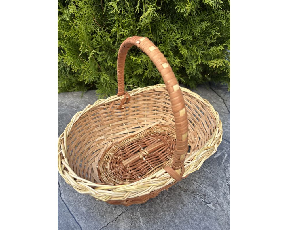 Великодній кошик з натуральної лози ручного плетіння Вишуканий великодній кошик із натуральної лози — це більше ніж святковий атрибут. Це символ родинних традицій, тепла та особливої атмосфери Великодня. Кошик виготовлений вручну майстрами з добірної екологічної лози. Акуратне щільне плетіння, елегантна форма та міцна ручка створюють гармонійний баланс між красою та практичністю. Натуральний відтінок лози підкреслює автентичність виробу та ідеально поєднується з вишитим рушником, писанками й паскою. Цей кошик стане сімейною реліквією, яку використовують з року в рік. За більш детальною інформацією щодо товарів та замовлення звертайтесь Telegram, Viber