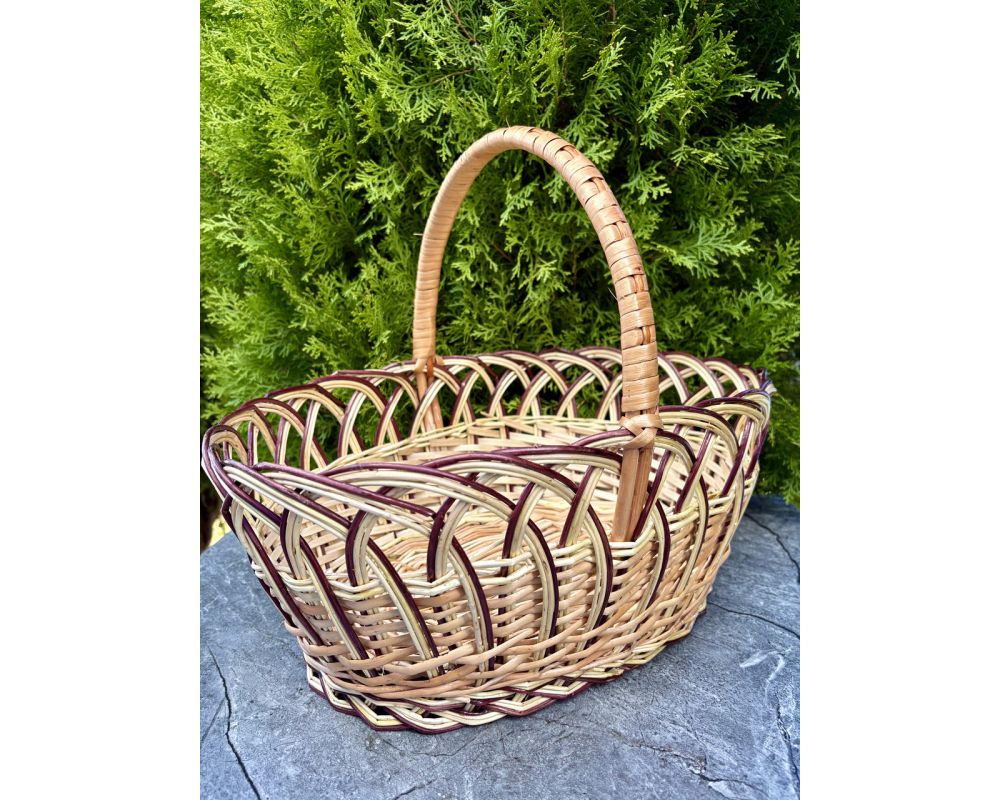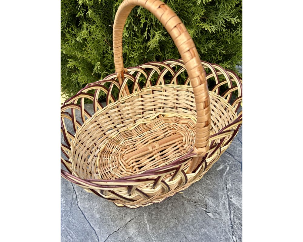 Кошик виготовлений вручну майстрами з добірної екологічної лози. Акуратне щільне плетіння, елегантна форма та міцна ручка створюють гармонійний баланс між красою та практичністю. Натуральний відтінок лози підкреслює автентичність виробу та ідеально поєднується з вишитим рушником, писанками й паскою.