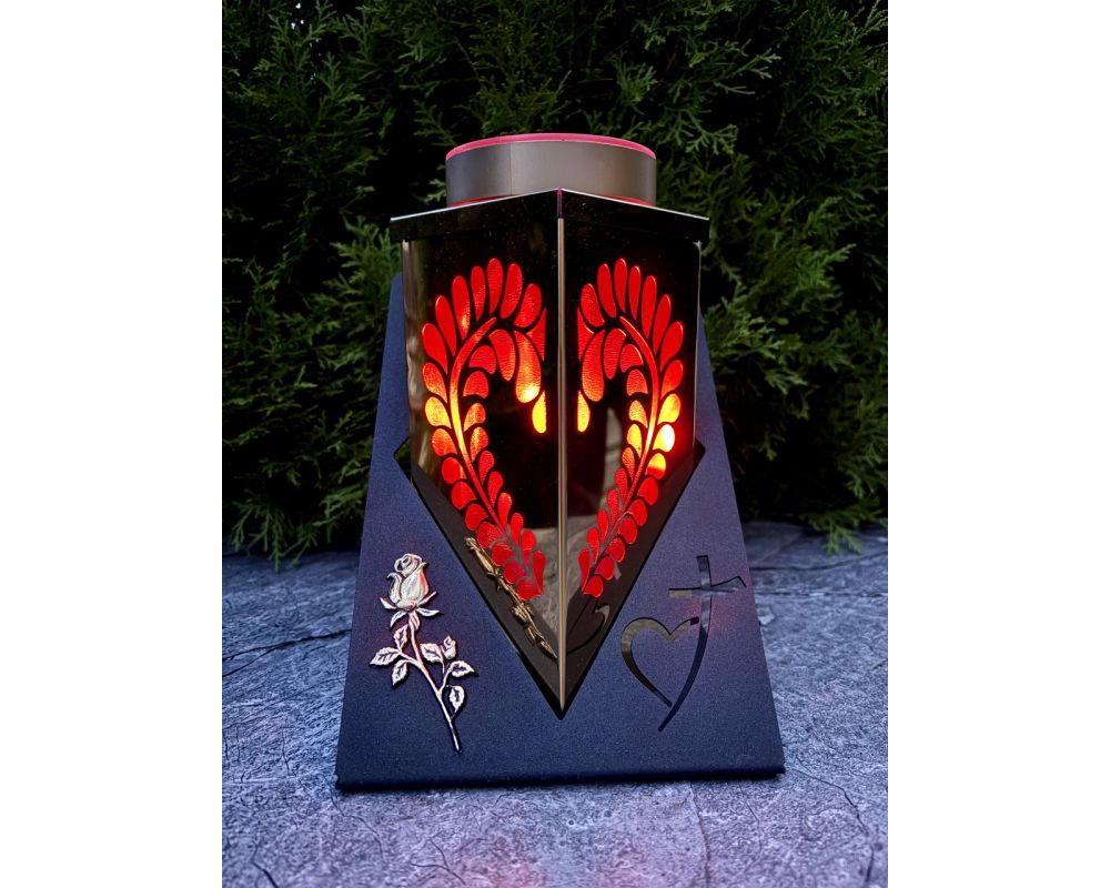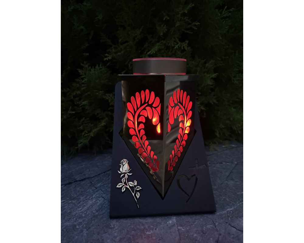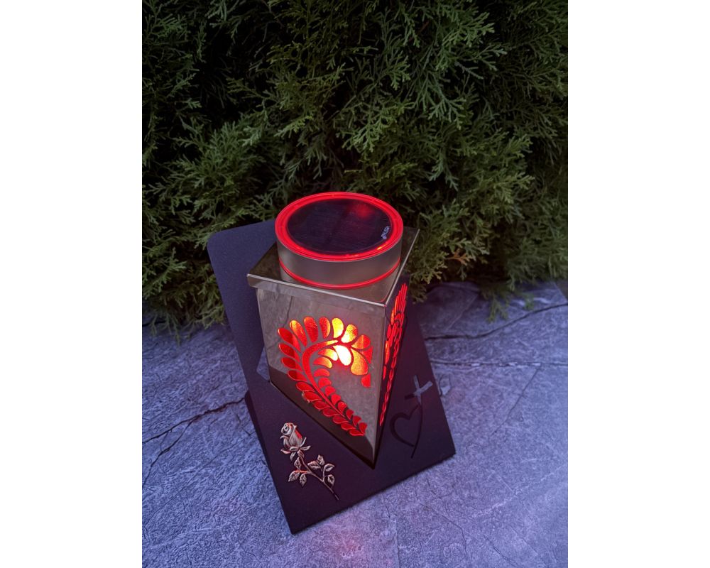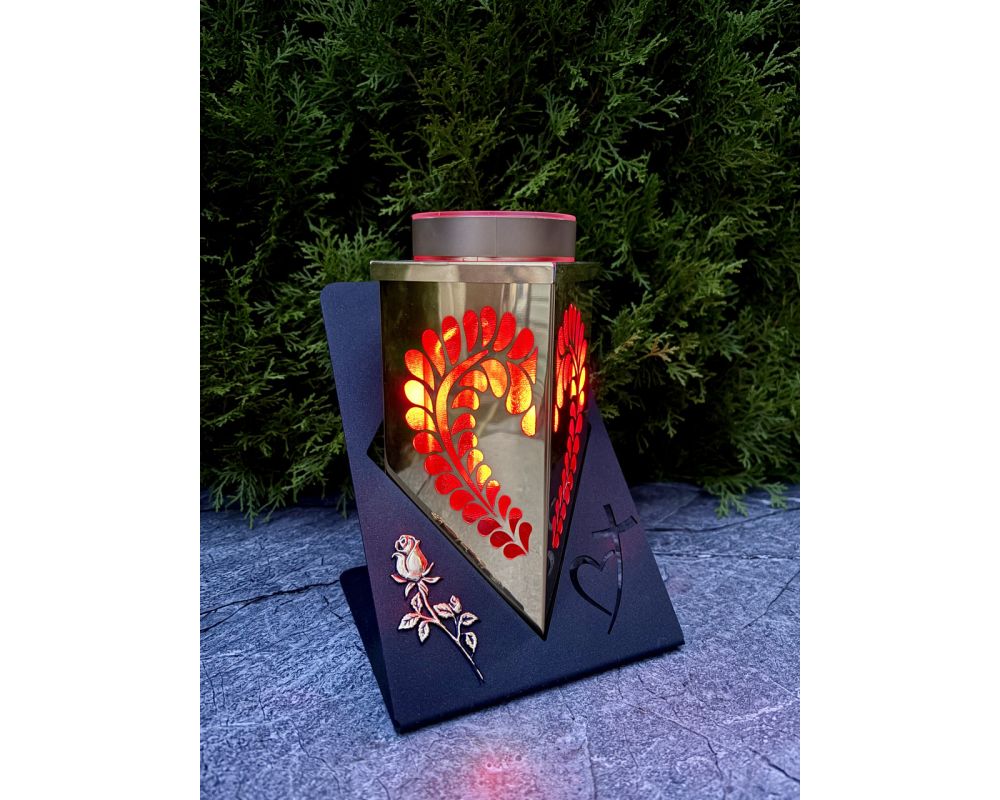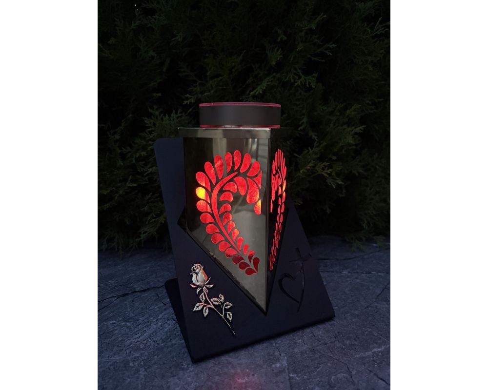 Лампадка на сонячній батареї Серце з трояндою преміум дизайн