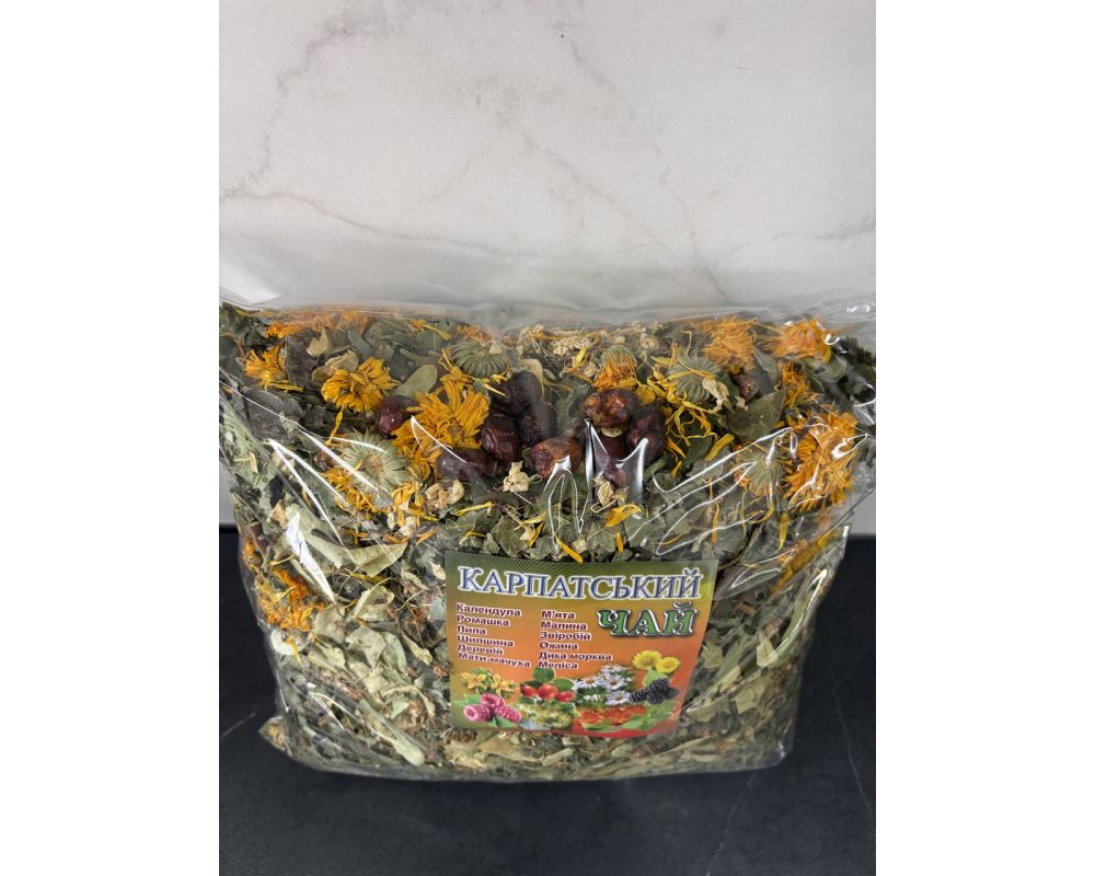 Карпатський трав’яний чай «Карпатський» — це натуральний збір цілющих трав, ягід та квітів, зібраних у екологічно чистих районах Карпат. Чай створений за традиційними рецептами травників і поєднує в собі приємний аромат, насичений смак та корисні властивості для організму.