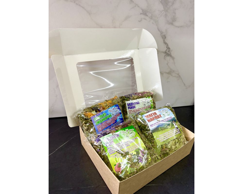Набір карпатських чаїв 4 шт по 90 г в подарунковій упаковці набір 2