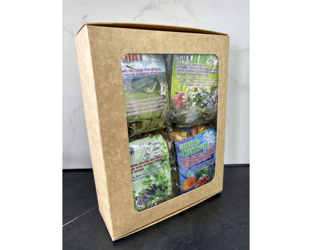 Набір смачних карпатських трав’яних чаїв —4 шт по 90 г у подарунковому пакуванні