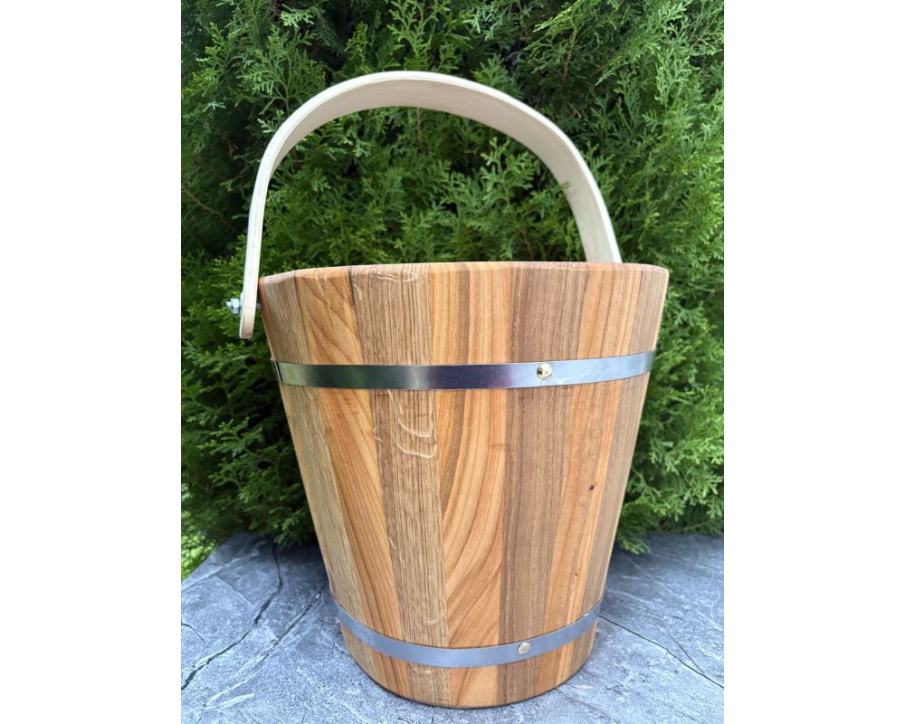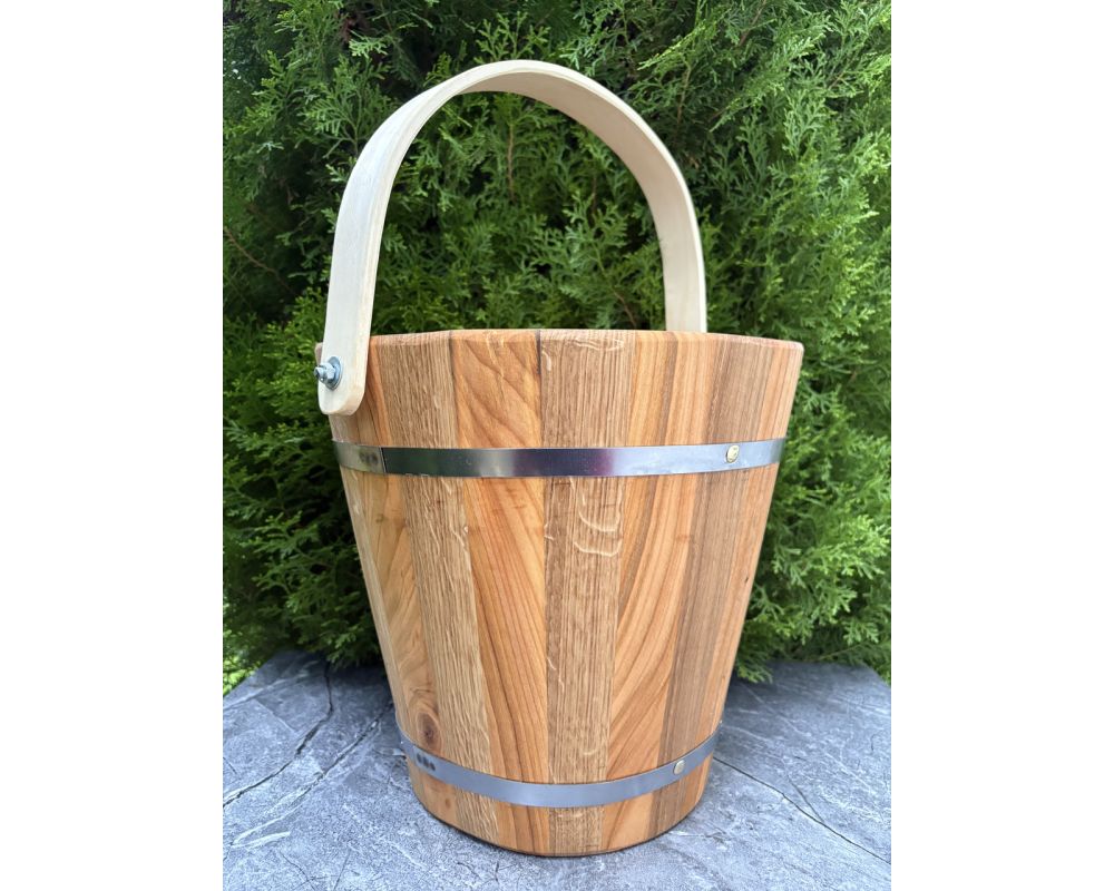 Таке відро ідеально підходить для набору води, запарювання віників, обливання каміння або використання як декоративний елемент інтер’єру сауни. Натуральна текстура дерева виглядає стильно та автентично, тому відро стане не тільки практичним, але й красивим аксесуаром для бані.
