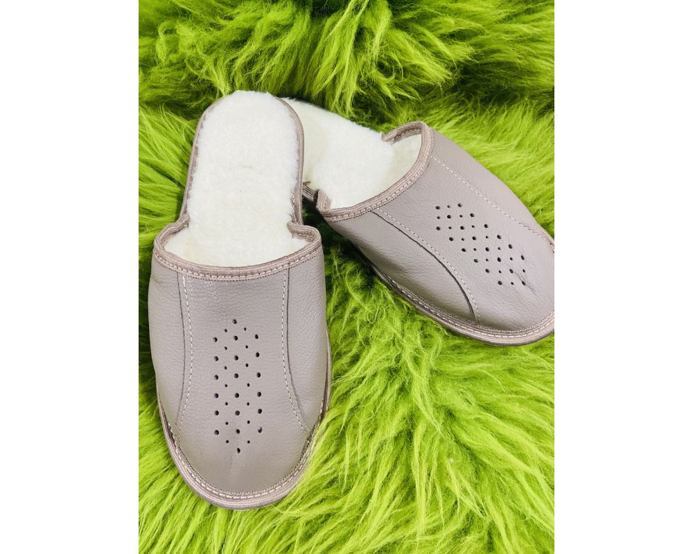 • Домашні чоловічі капці із шкіри та овечої шерсті