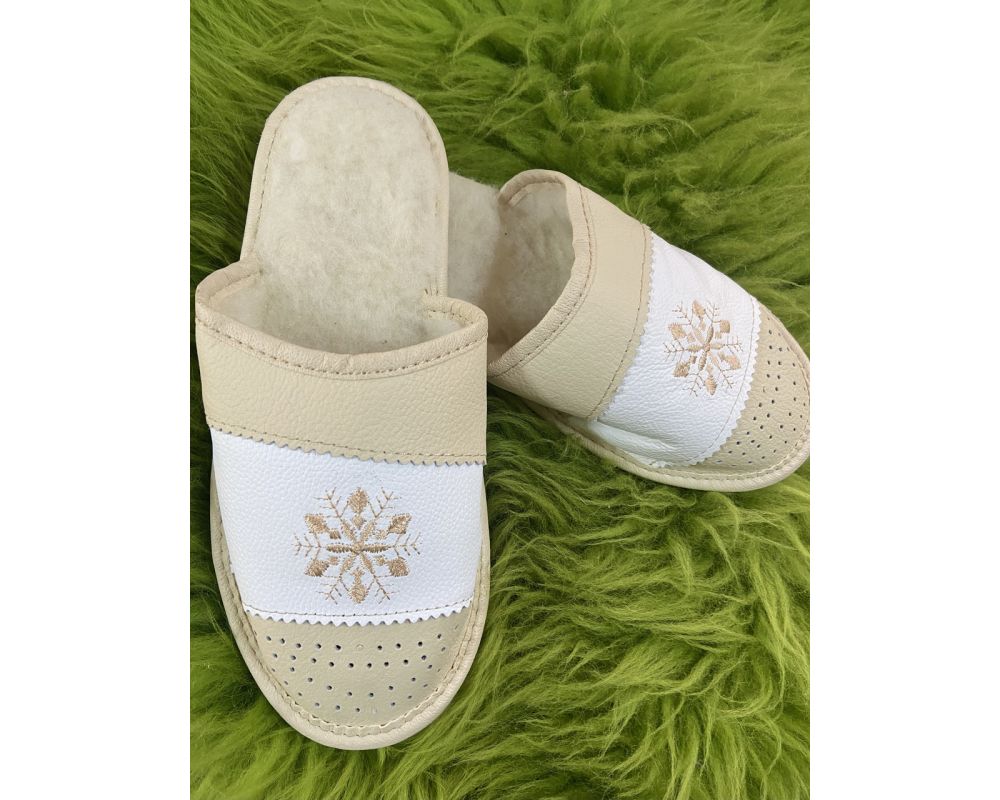 Домашні капці жіночі із шкіри та овечої шерсті. Теплі, комфотні, гарної якості.