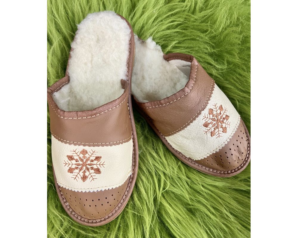 Домашні капці жіночі із шкіри та овечої шерсті. Теплі, комфотні, гарної якості.