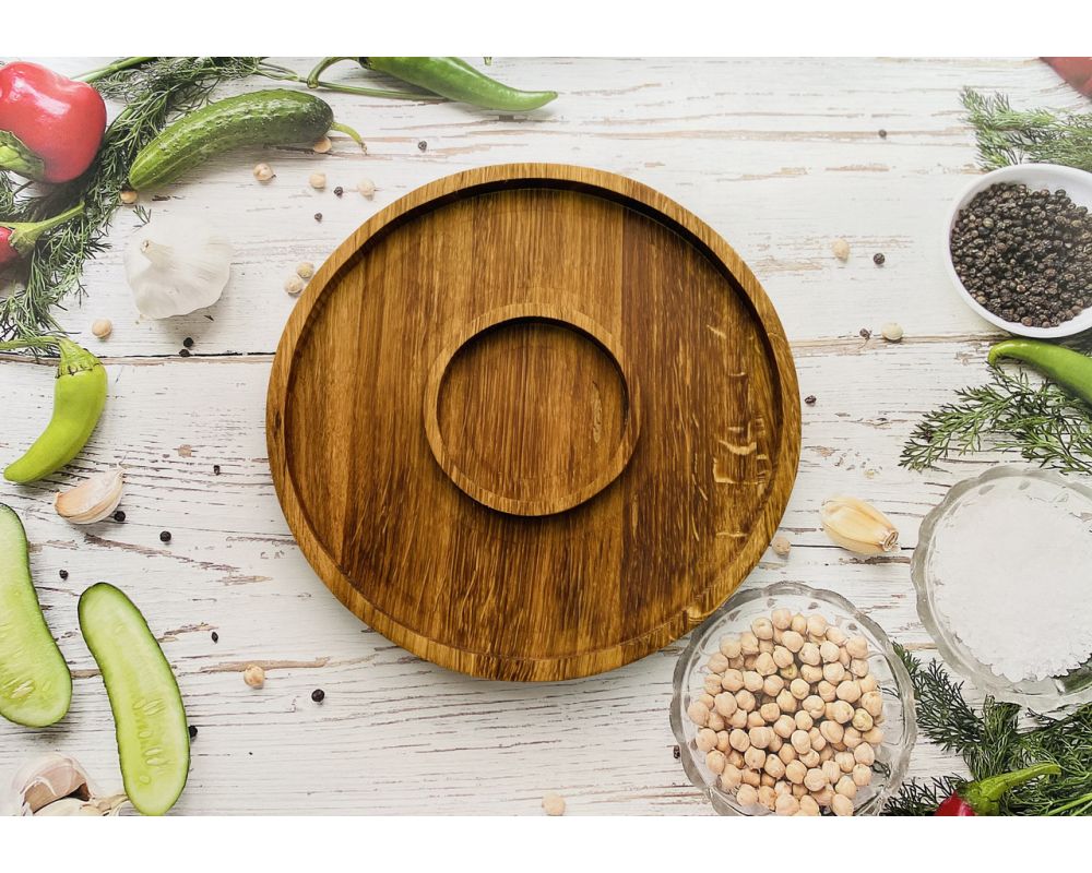Стильне блюдо, виготовлене з натурального дерева, має надзвичайно красиву структуру, використовується для подачі різних страв. Рекомендовано для використання в ресторанному бізнесі. Дерево: дуб. Можливе виготовлення різних розмірів та різних написів на блюдах.