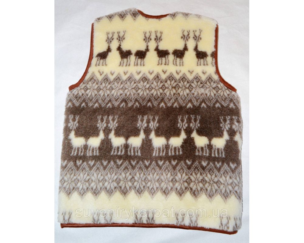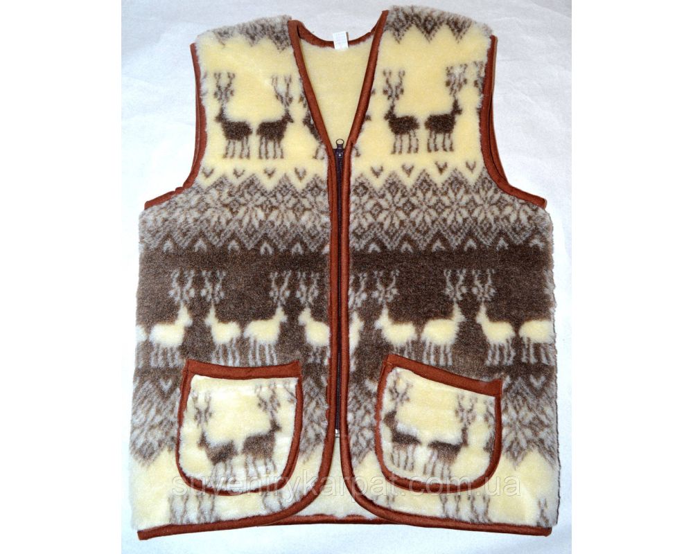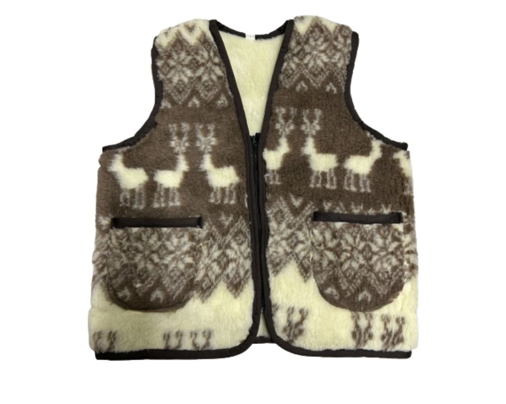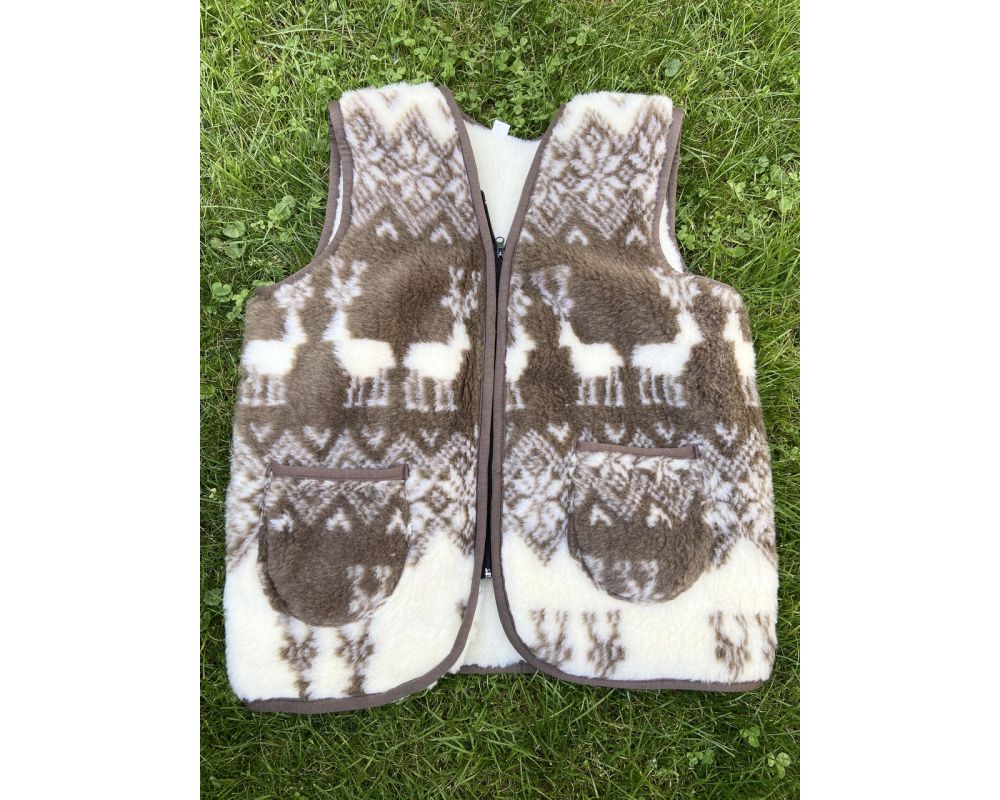 • Жилет з овечої вовни орнамент олені на блискавці(безрукавка жіноча, Жилет із овечої шерсті стьобаний жилет із