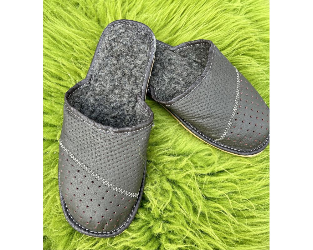Домашні шкіряні чоловічі капці з овечої шерсті 44