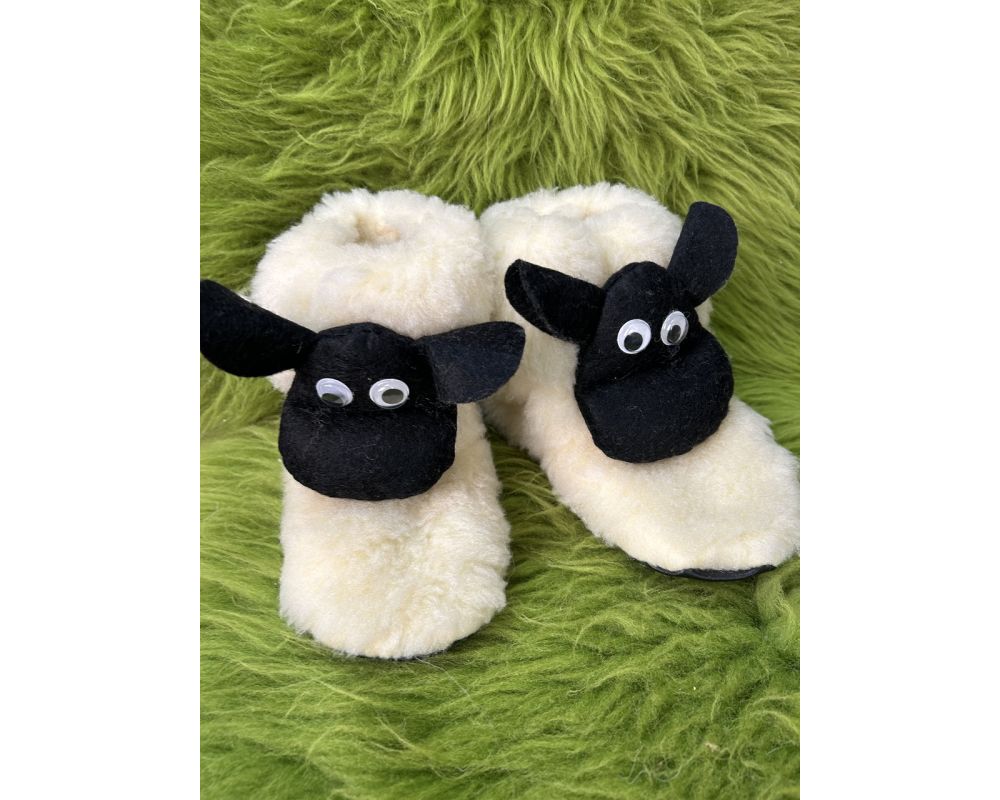 Легкі та теплі дитячі чуні з овечої шерсті на замшевій підошві.