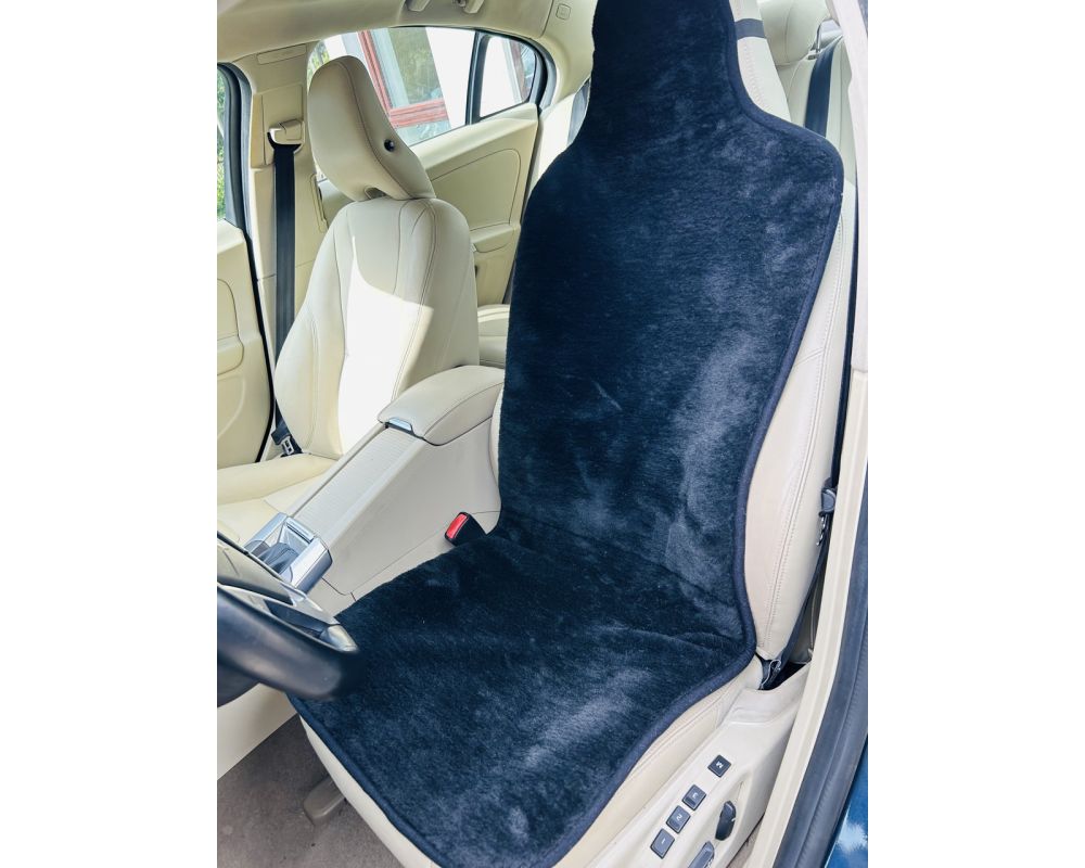 Універсальна автомобільна накидка на автомобільне сидіння. Накидка зроблена з овечої шерсті, двостороння. Кріпиться за допомогою гумки до спинки сидіння. Накидка на сидіння автомобіля забезпечить тепло і затишок водієві під час їзди.