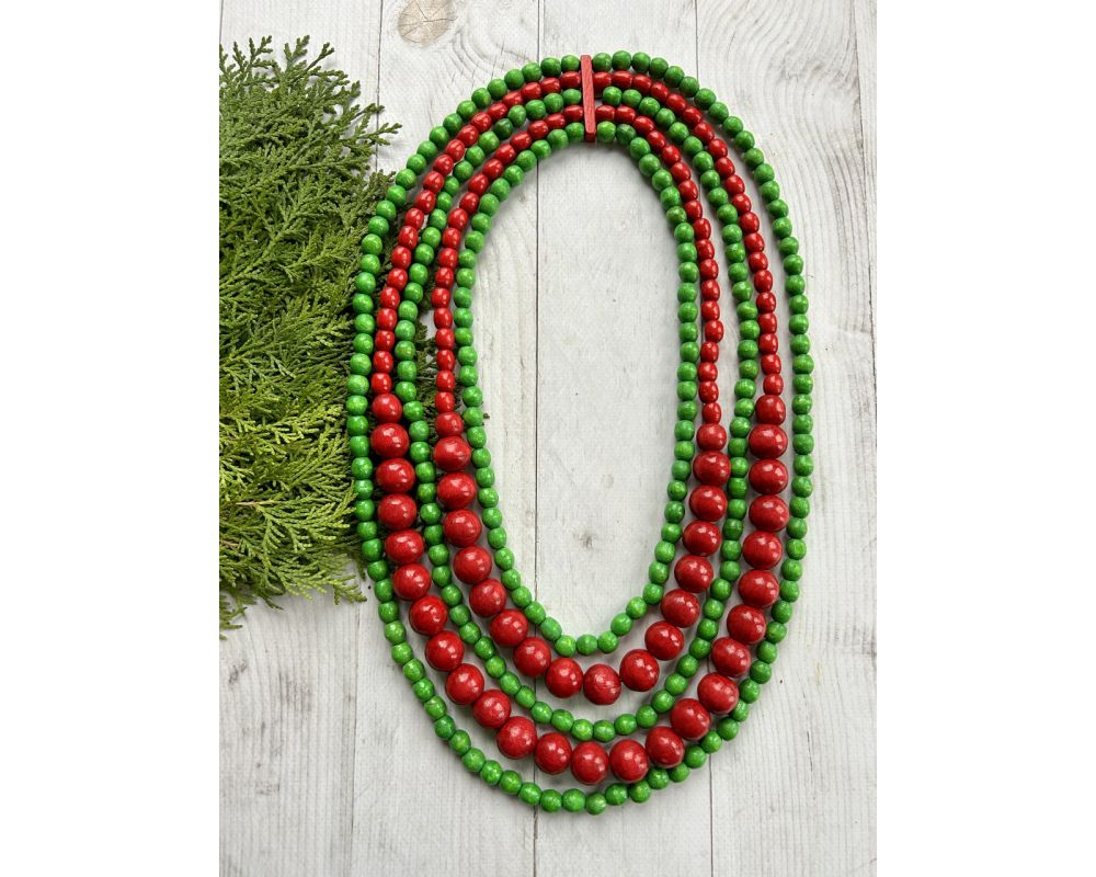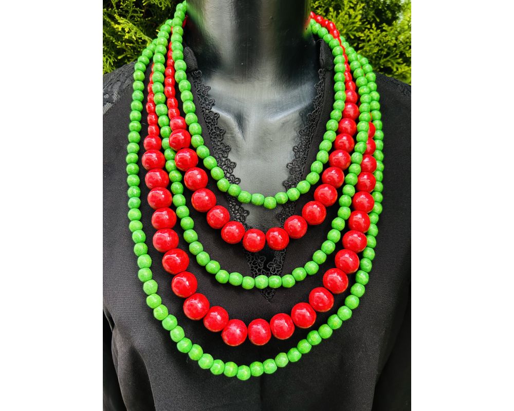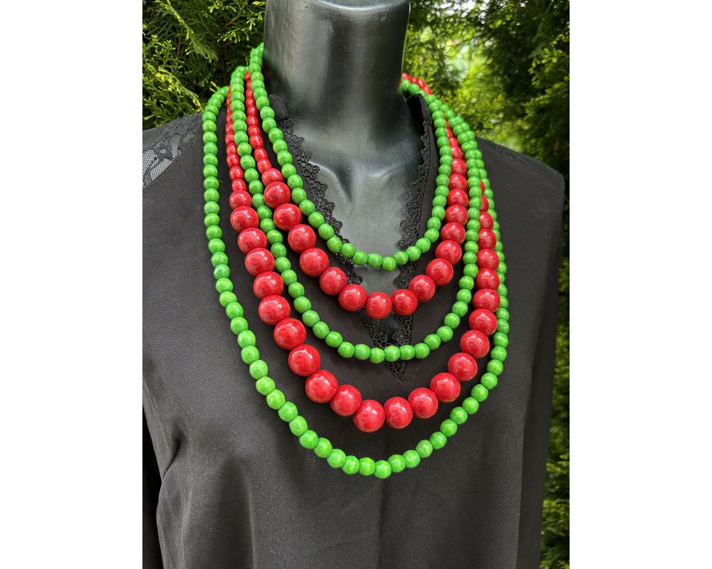 • Намисто з дерева червоно-зелене