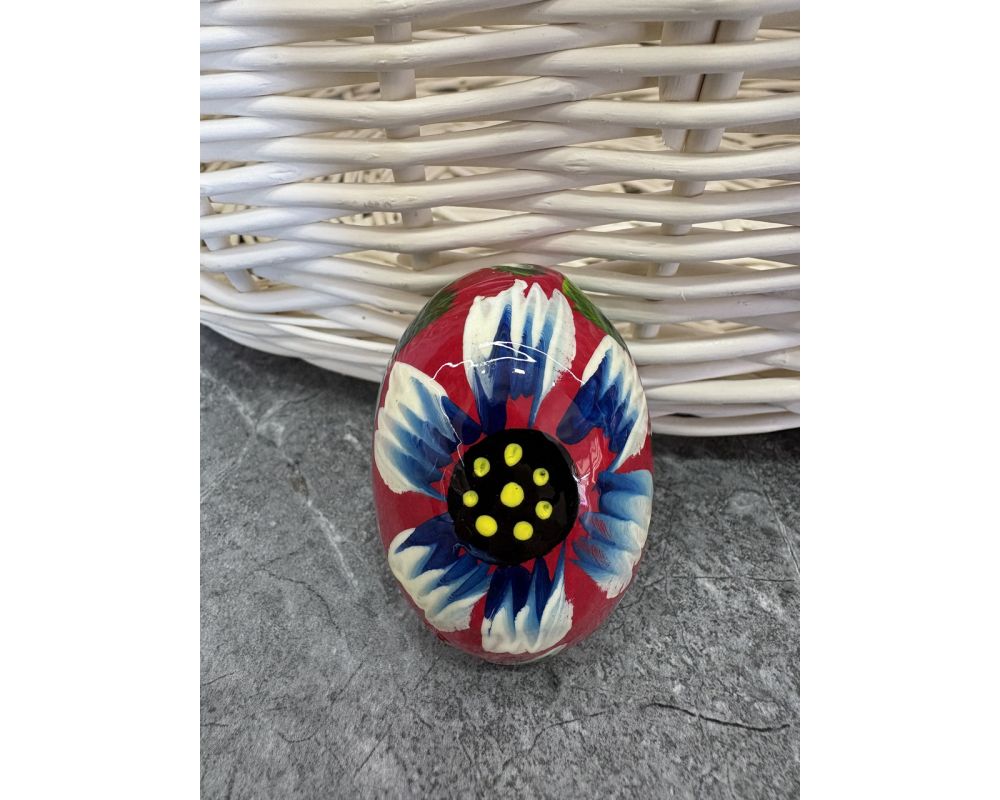 Яйце дерев'яне ПИСАНКА ручний розпис, яйця на Великдень прикраса в кошик, писанка деревʼяна квітка