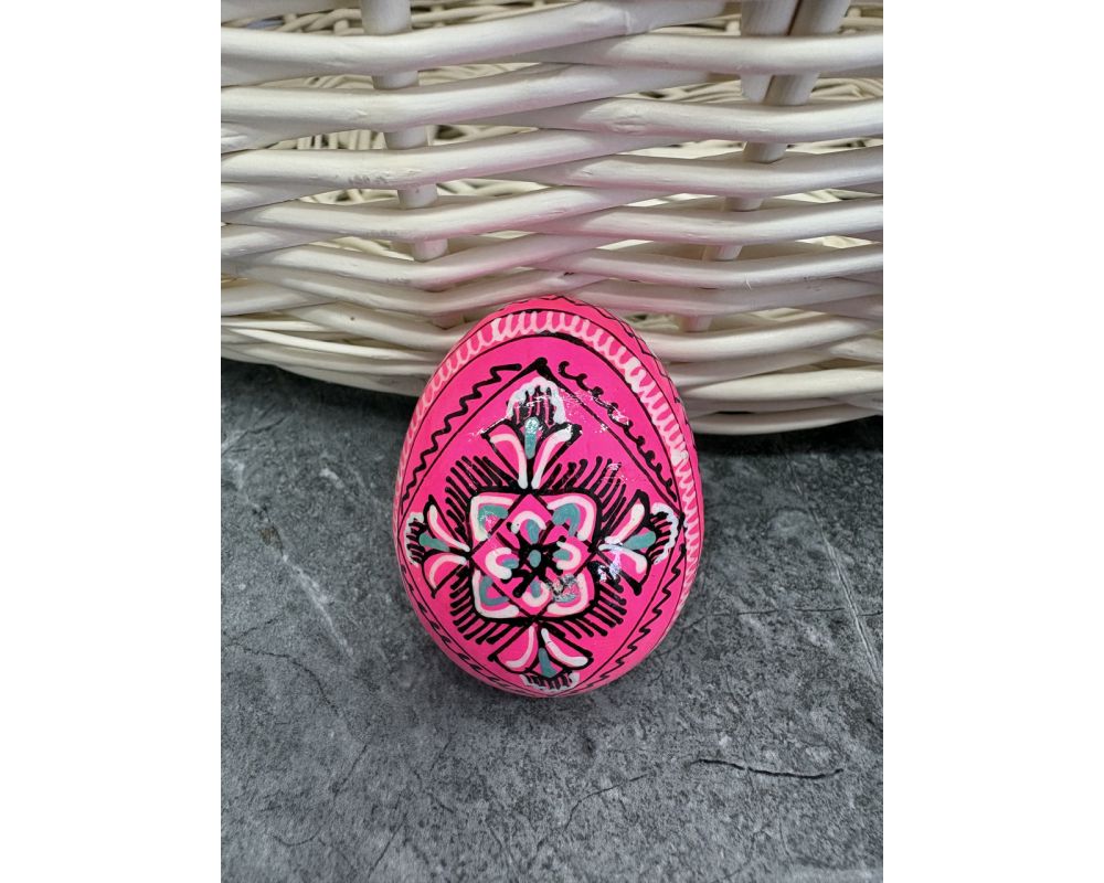 Яйце дерев'яне ПИСАНКА ручний розпис, яйця на Великдень прикраса в кошик, писанка деревʼяна рожевий колір