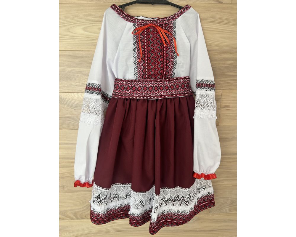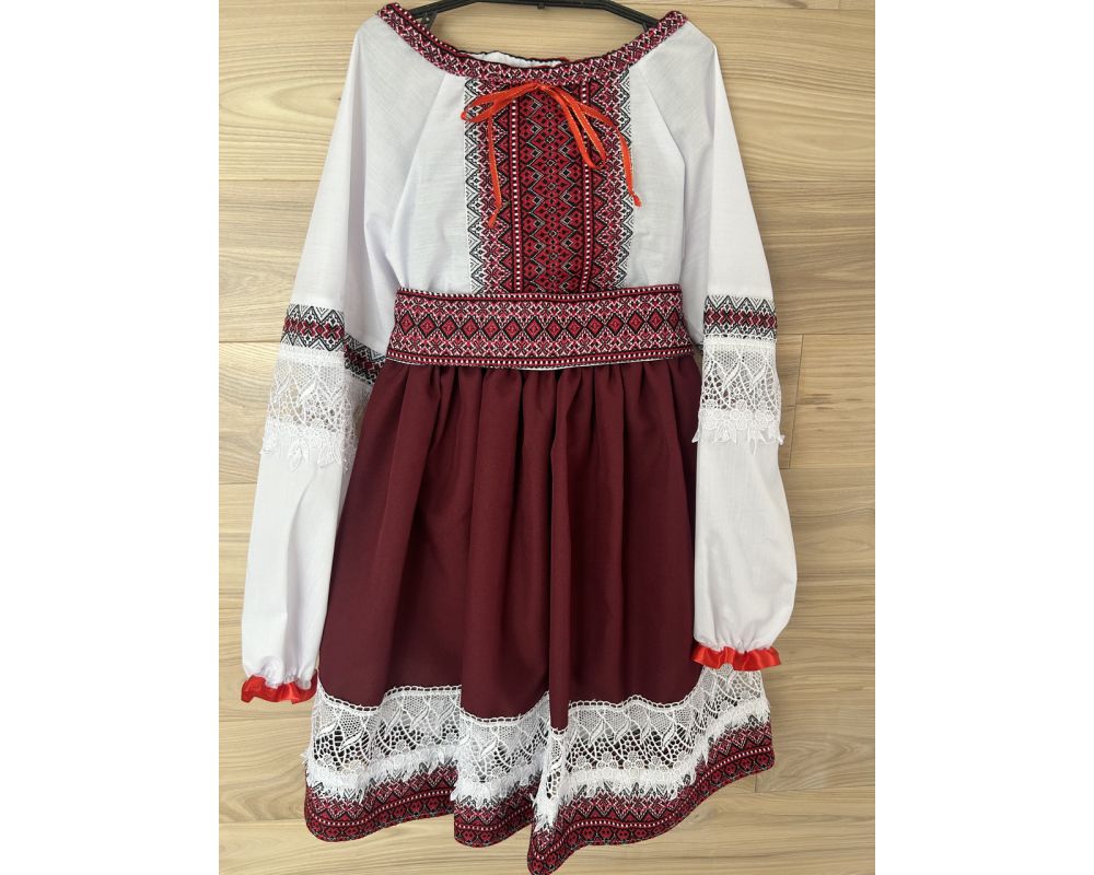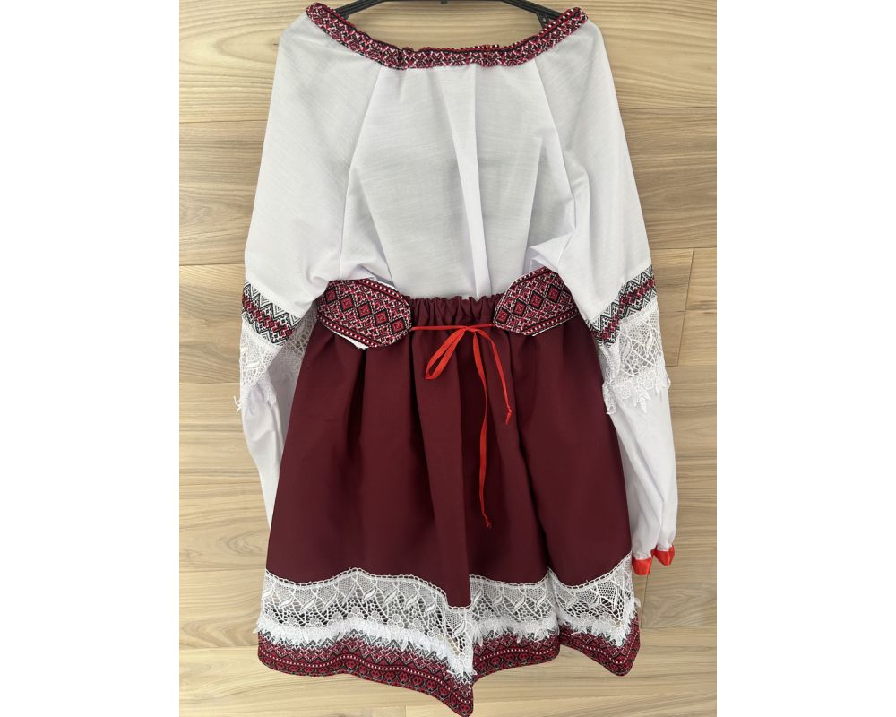 Вишитий костюм для дівчинки в національному українському стилі, оздоблений мереживом.