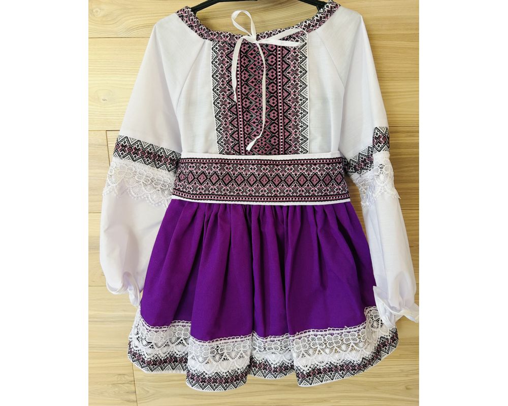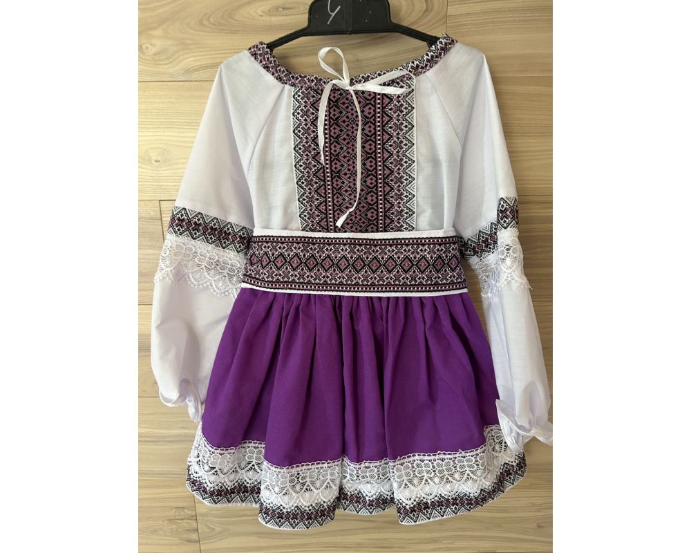 Вишитий костюм для дівчинки в національному українському стилі, оздоблений мереживом.