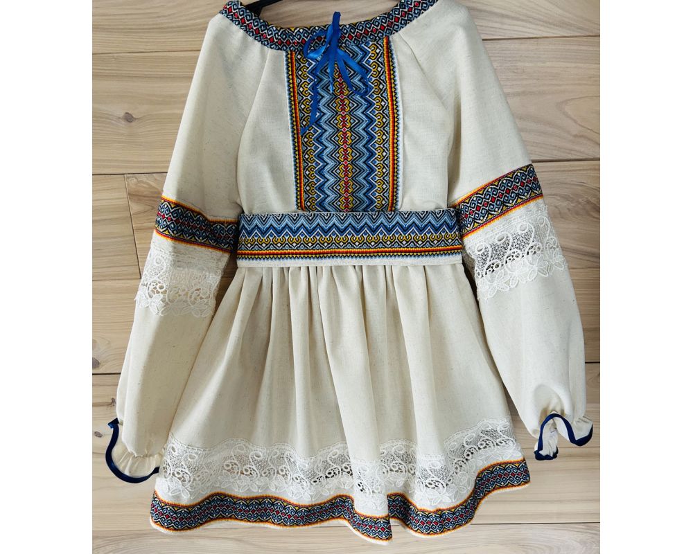 Вишитий костюм для дівчинки в національному українському стилі, оздоблений мереживом.